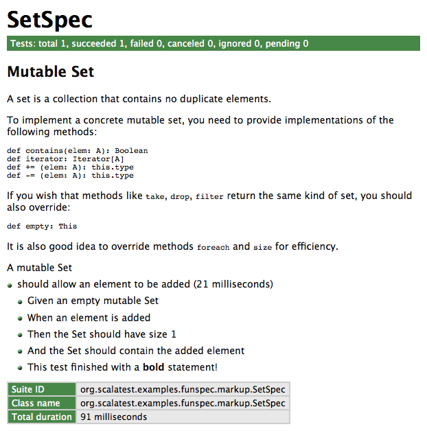 in the class will be ignored. If you run the above SetSpec in the Scala interpreter, you'll see:
